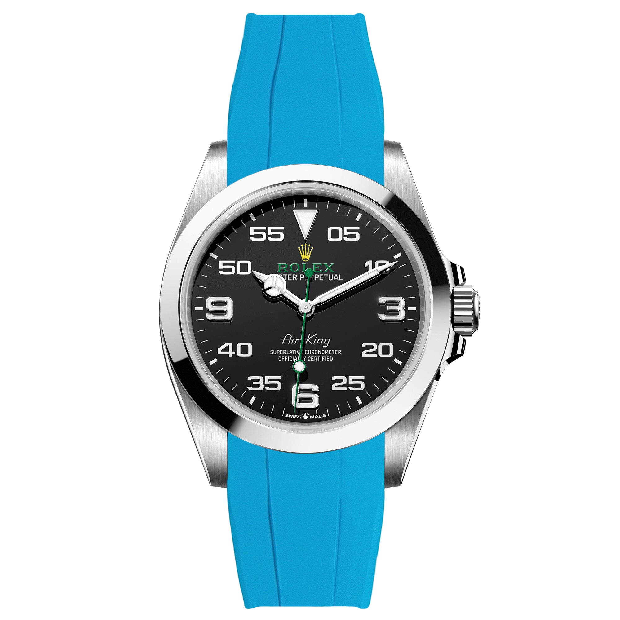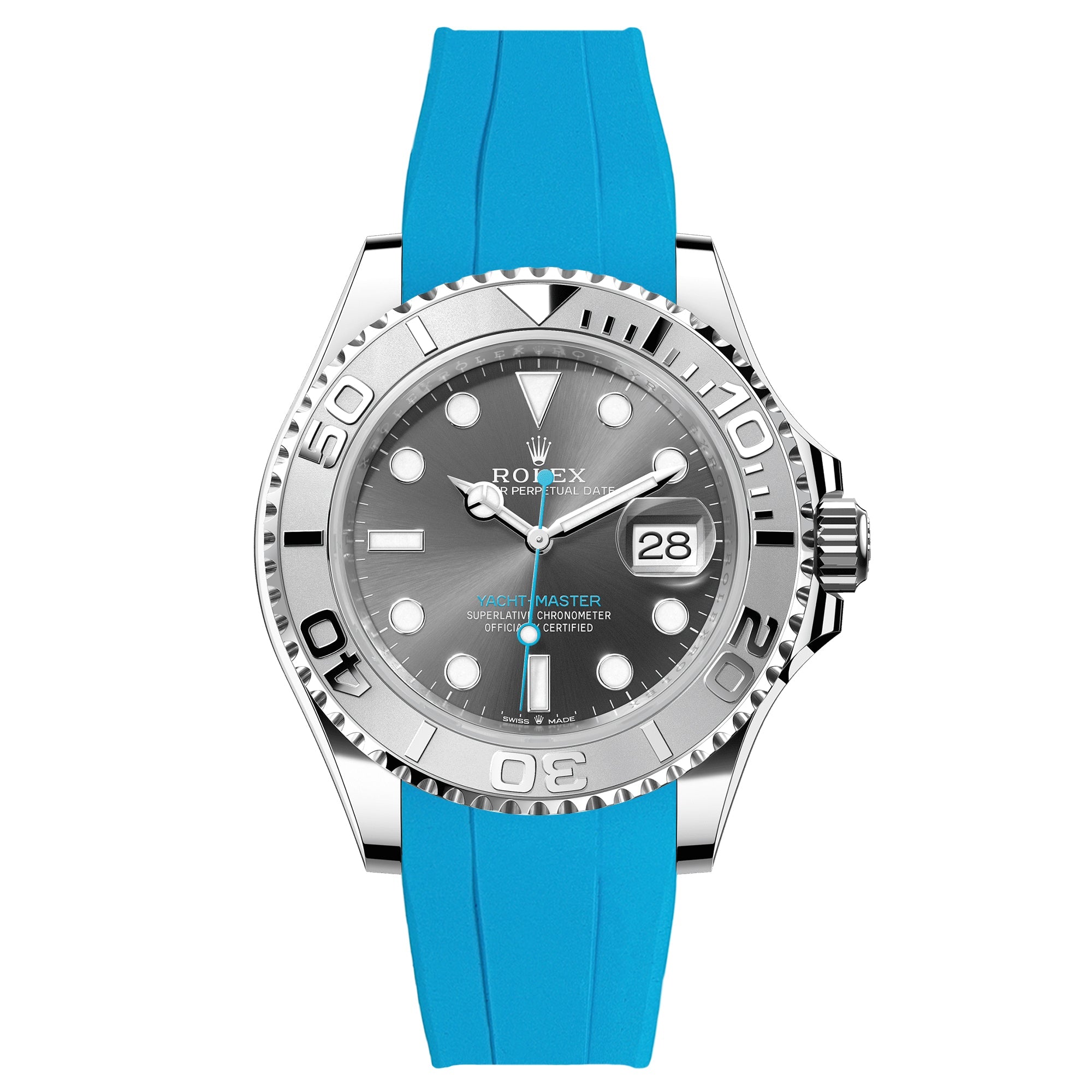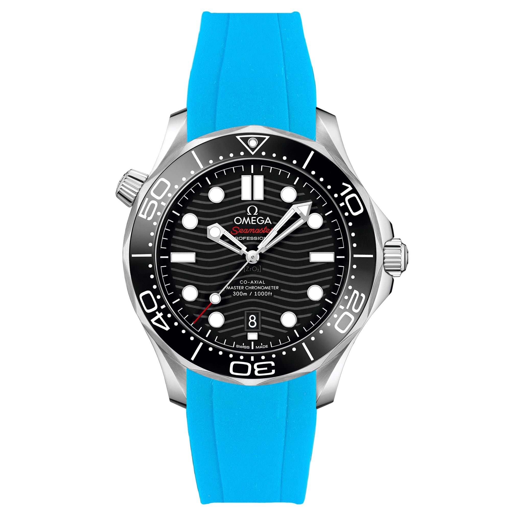 Integrated Curved End FKM Rubber Strap for Tudor Ranger - Blue (2440)