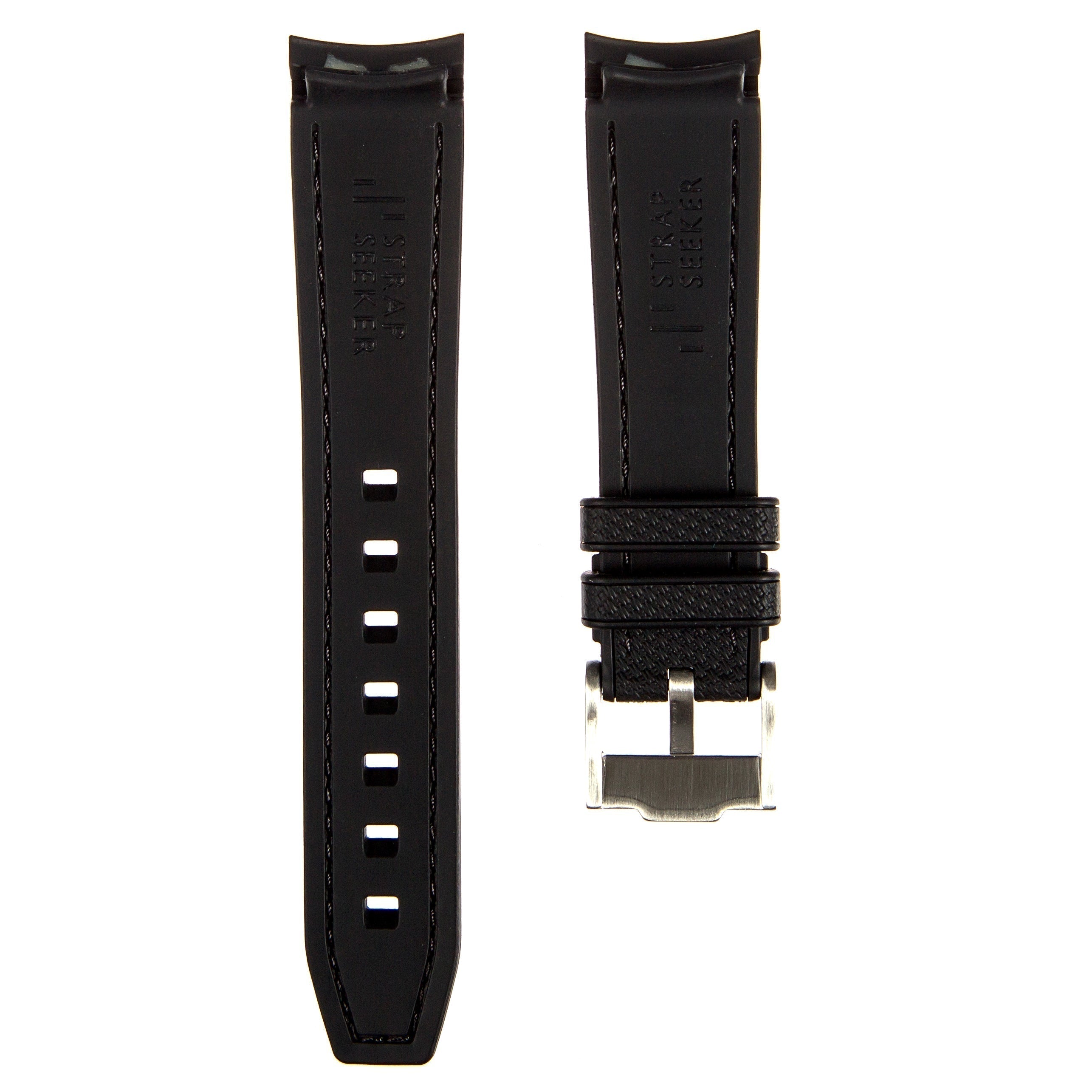 Textured Curved End Rubber Watch Strap For Rolex Submariner 40mm - Navy with White Stitch (2405)