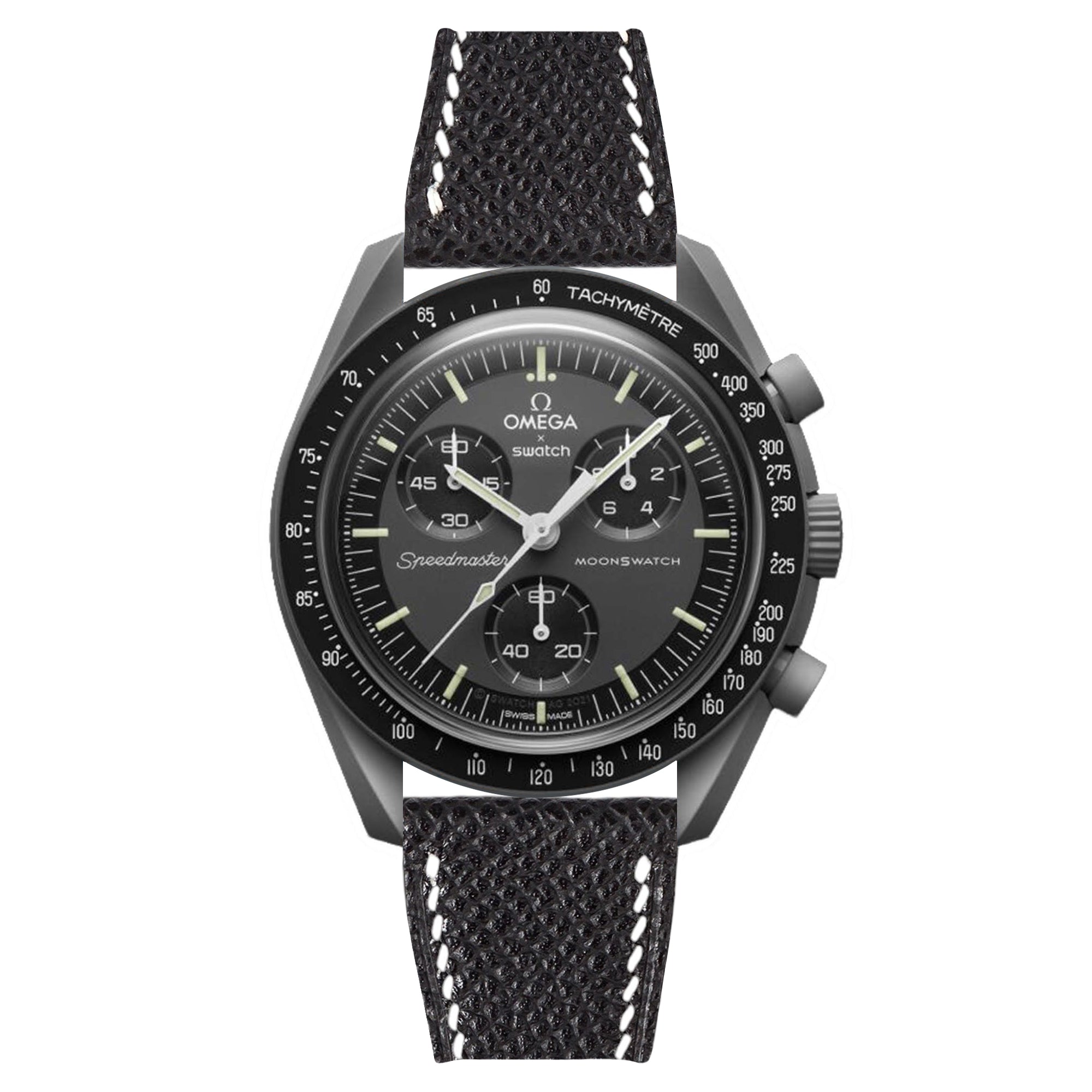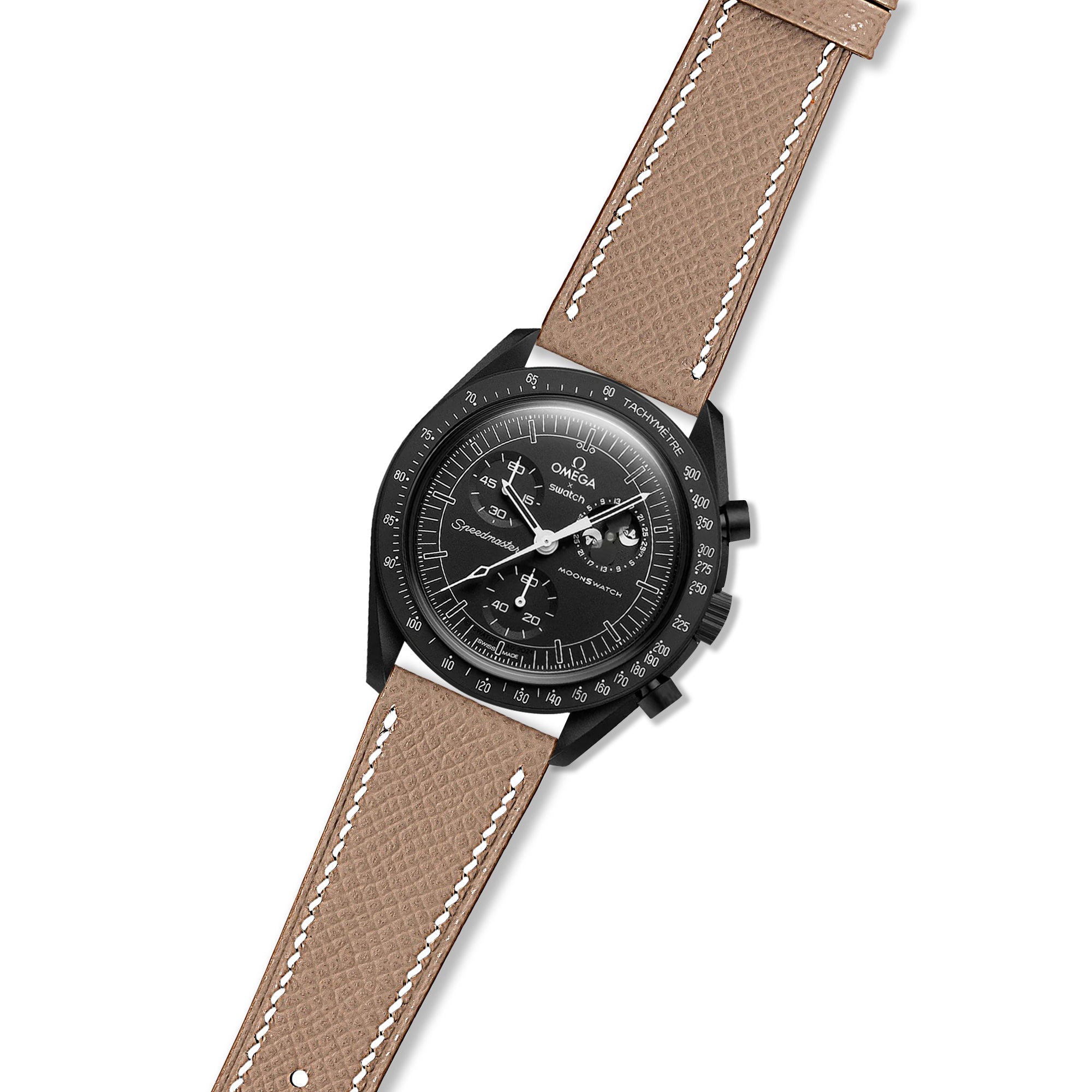 Elevate your Omega x Swatch Moonswatch Mission to the Moonphase - New Moon with a touch of French elegance. Our Epsom Calfskin Leather Strap, handcrafted from premium leather sourced from the renowned Tanneries Du Puy, adds a sophisticated and refined touch to your Bioceramic timepiece.