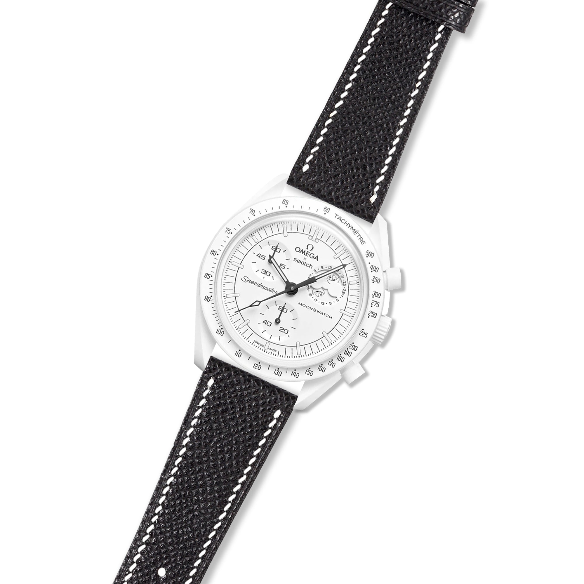 Elevate your Omega x Swatch Moonswatch Mission to the Moonphase - Full Moon with a touch of French elegance. Our Epsom Calfskin Leather Strap, handcrafted from premium leather sourced from the renowned Tanneries Du Puy, adds a sophisticated and refined touch to your Bioceramic timepiece.