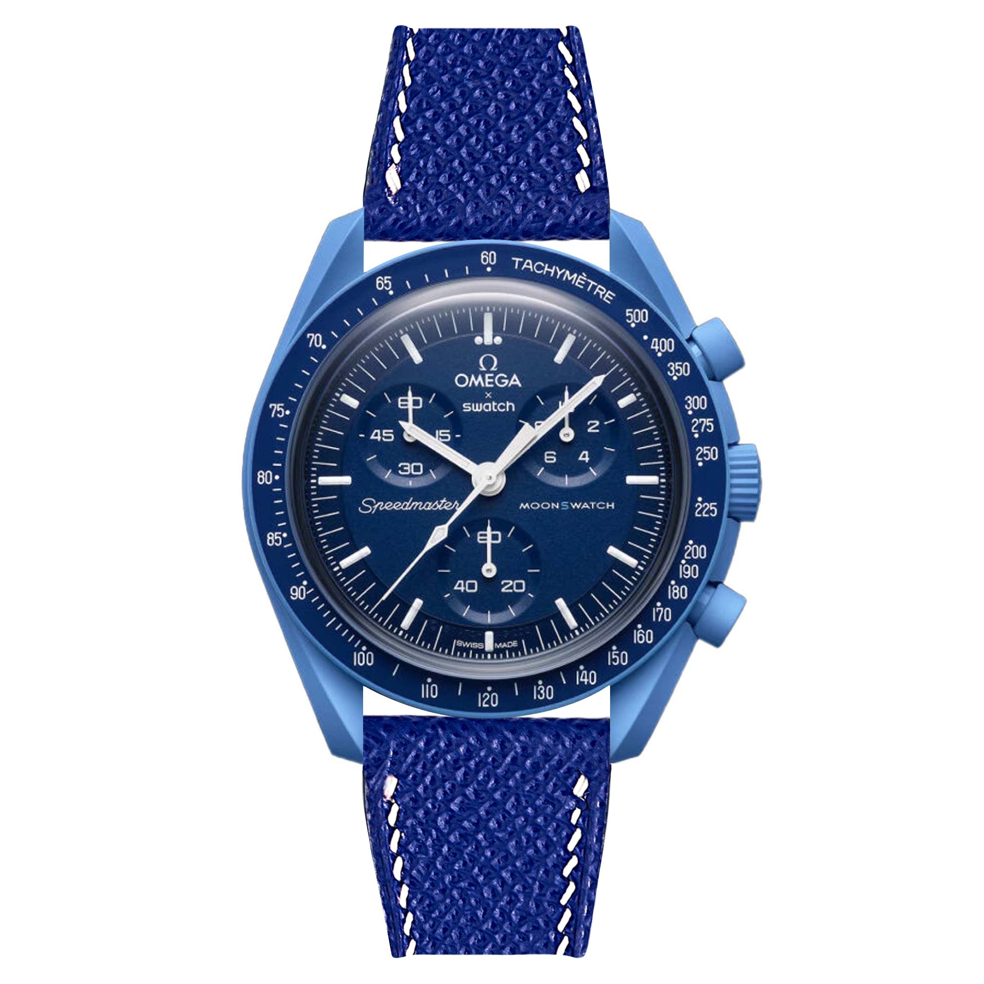 Elevate your Omega x Swatch Moonswatch Mission to the Moonphase - New Moon with a touch of French elegance. Our Epsom Calfskin Leather Strap, handcrafted from premium leather sourced from the renowned Tanneries Du Puy, adds a sophisticated and refined touch to your Bioceramic timepiece.