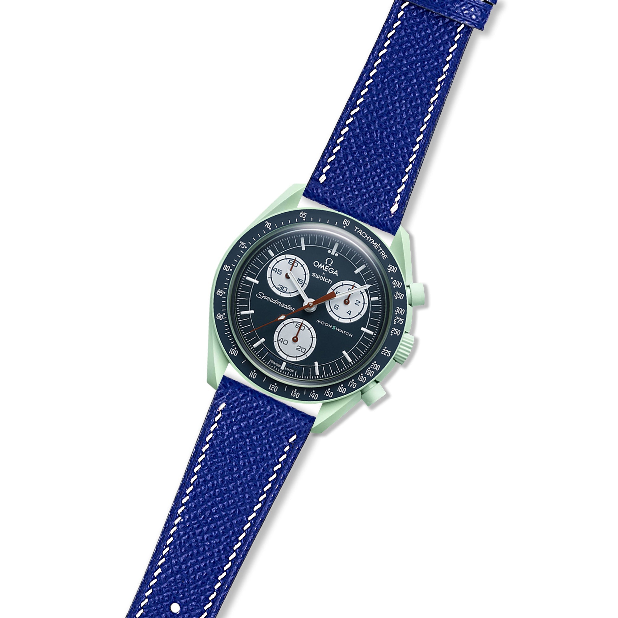 Elevate your Omega x Swatch Moonswatch Mission on Earth with a touch of French elegance. Our Epsom Calfskin Leather Strap, handcrafted from premium leather sourced from the renowned Tanneries Du Puy, adds a sophisticated and refined touch to your Bioceramic timepiece.