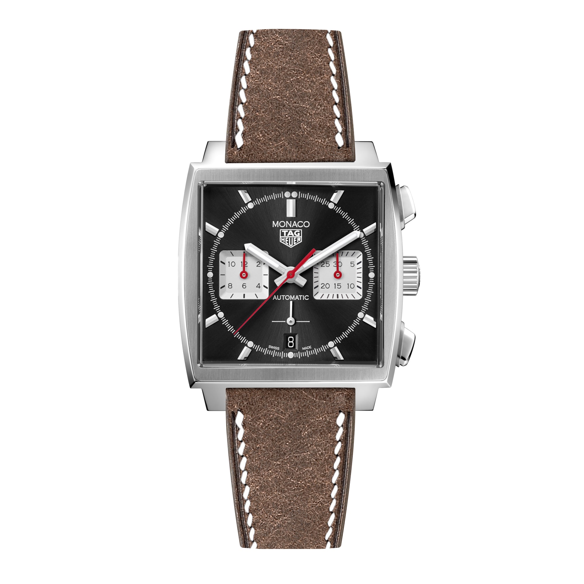 Epsom Leather Watch Band for TAG Heuer Monaco - Quick-Release - Gris Asphalte (2439)