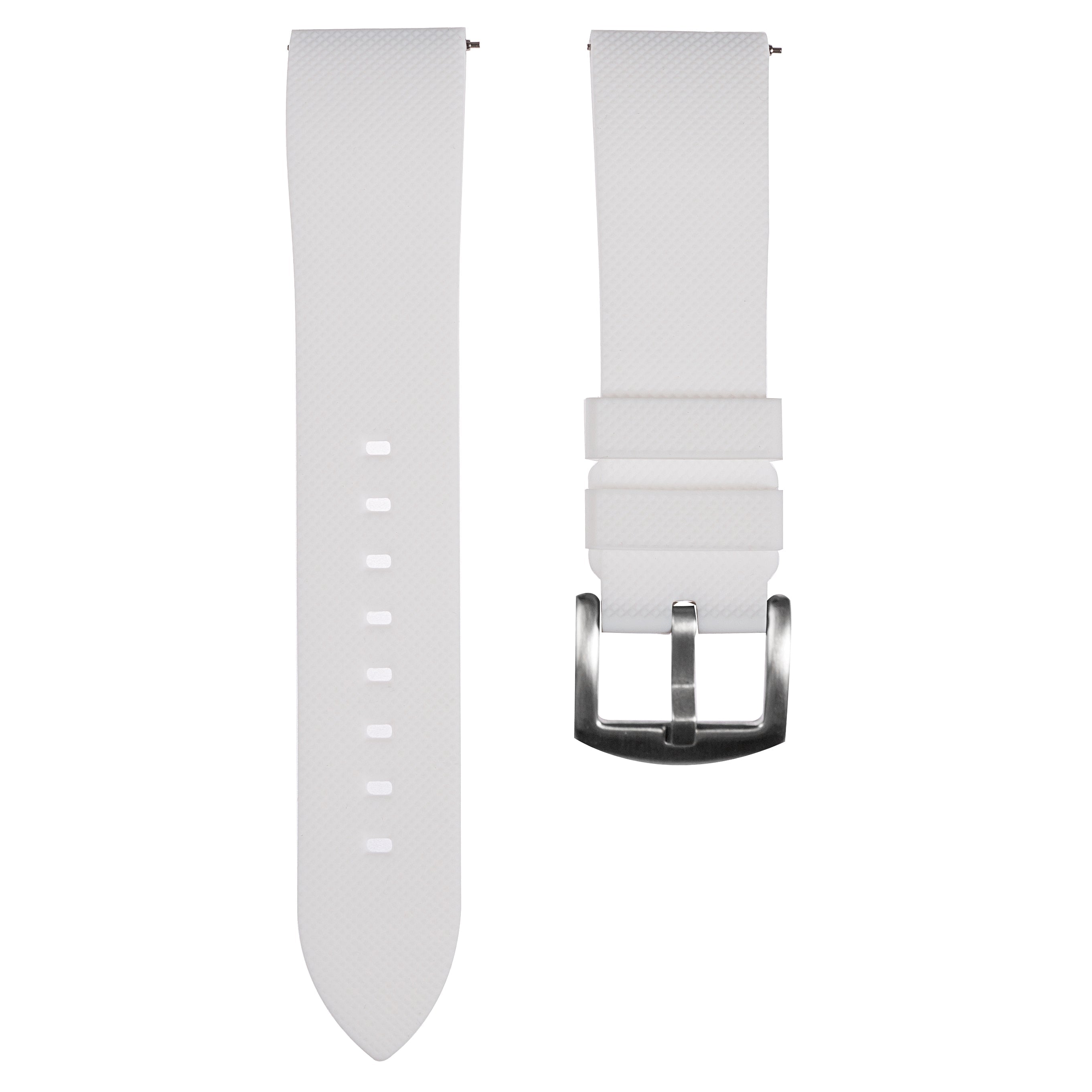 Introducing the Textured Silicone Quick-Release Strap, where comfort meets convenience.  Designed for the active individual, this strap boasts a unique textured finish for enhanced grip and breathability, ensuring your watch stays securely and comfortably on your wrist, no matter the adventure.