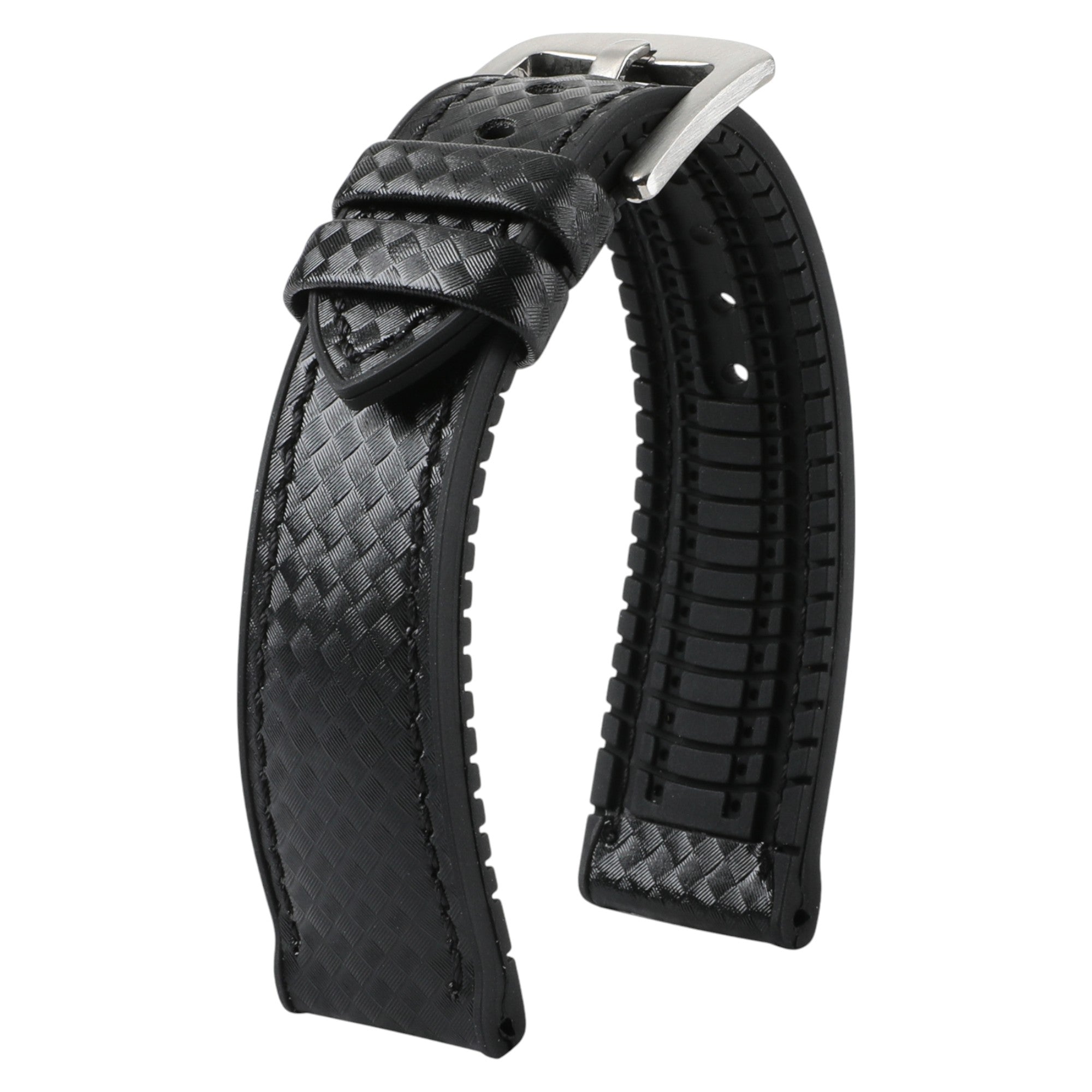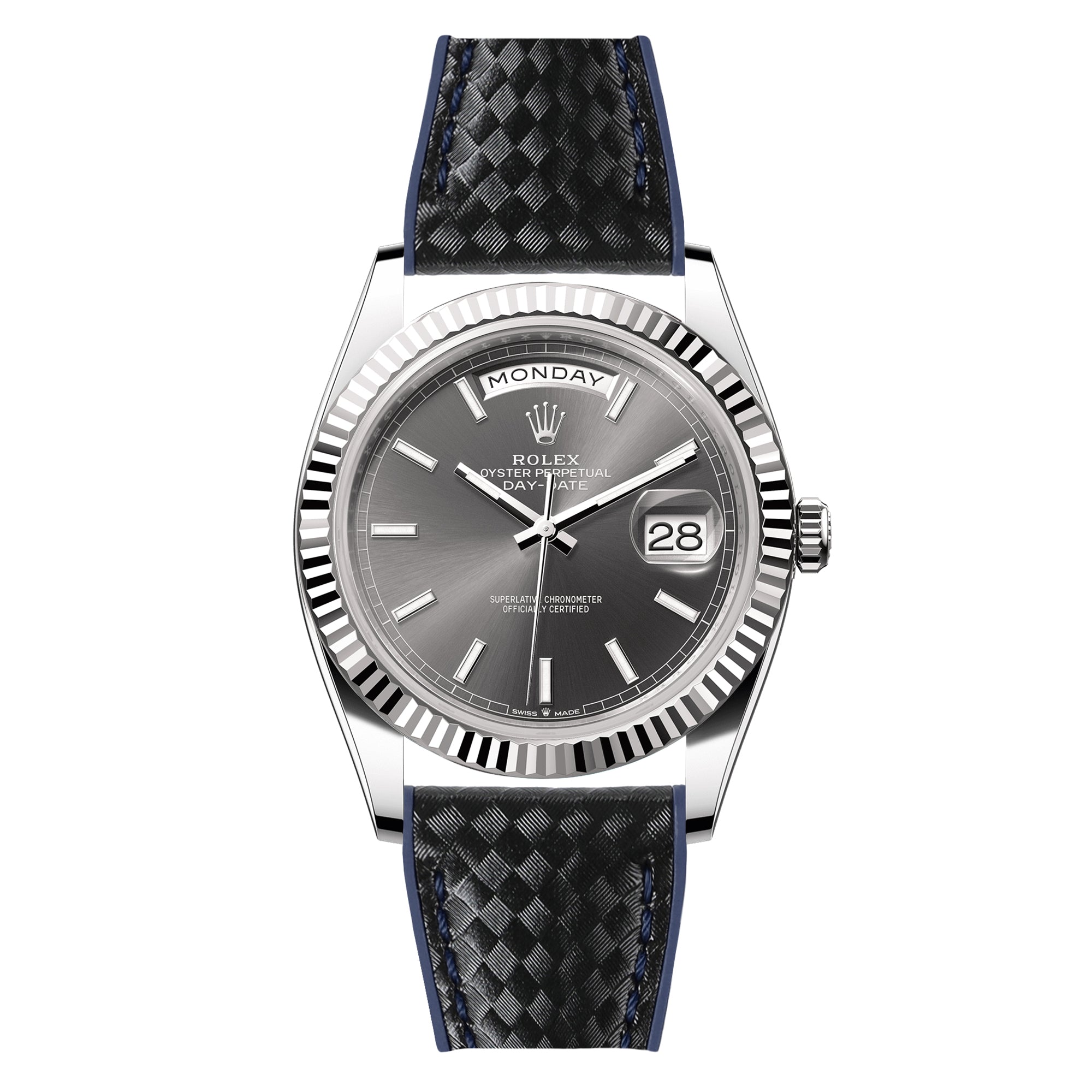 Ezra Leather Rubber Performance Hybrid Watch Band for Rolex Day-Date - Black (8056)