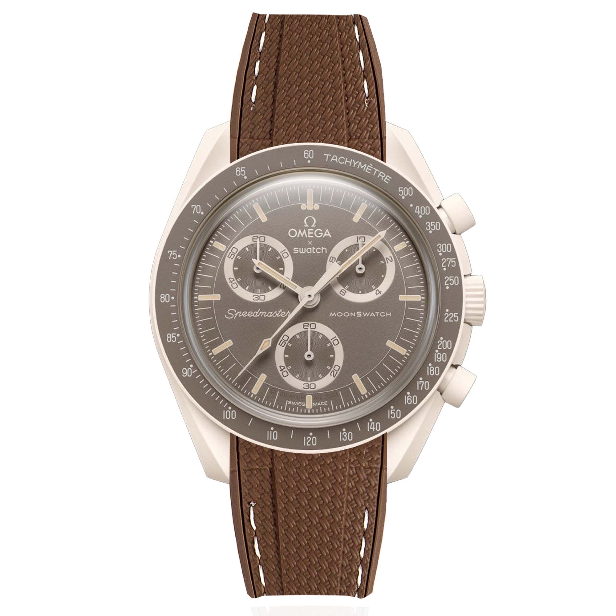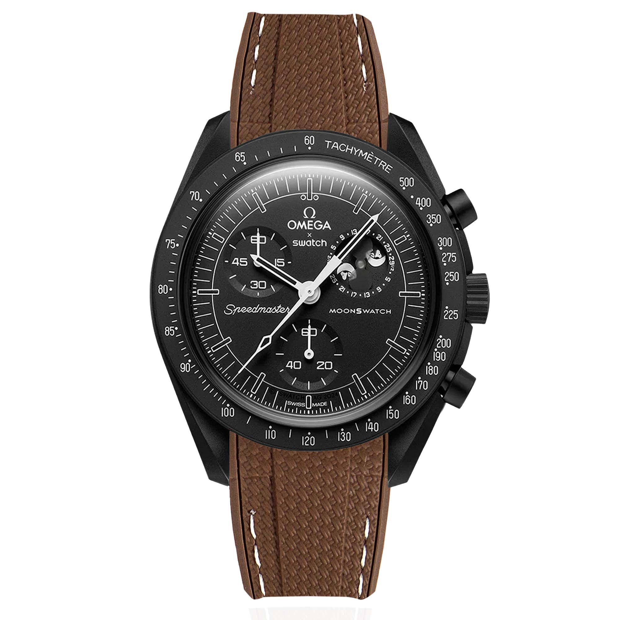Textured Curved End Rubber Watch Strap for Omega x Swatch Moonswatch - Mission to The Moonphase - New Moon - Brown (2405)