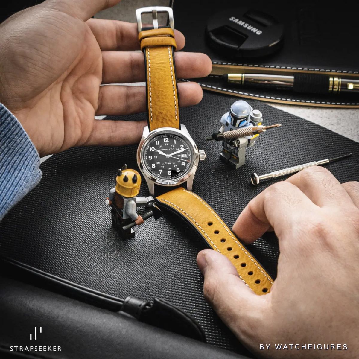 Watts Premium Italian Calf Leather Rubber Hybrid Performance Strap Mustard Yellow Sale price$57.00 SGD