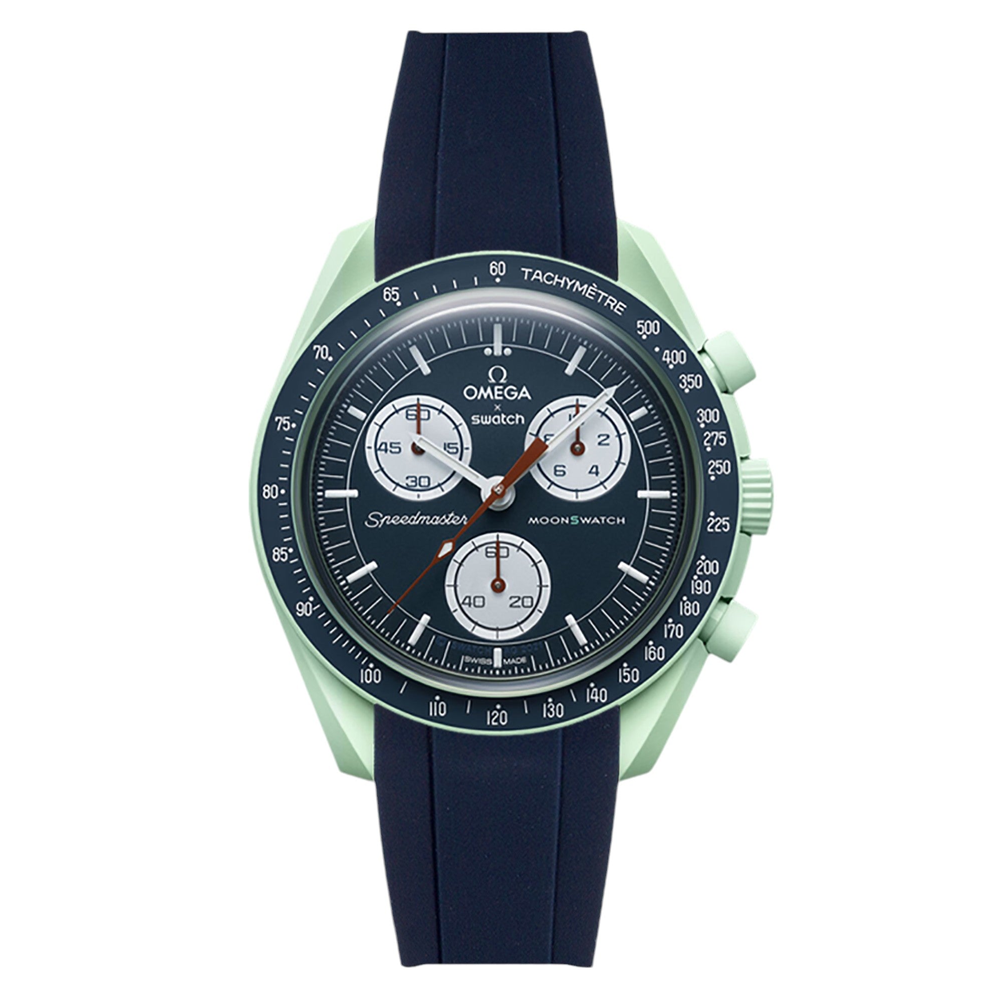 Disclaimer: This strap is not produced or approved by Omega or Swatch Group Ltd. It is a third-party accessory designed specifically to fit the Omega X Swatch BioCeramic Mission to the Moonphase New Moon.