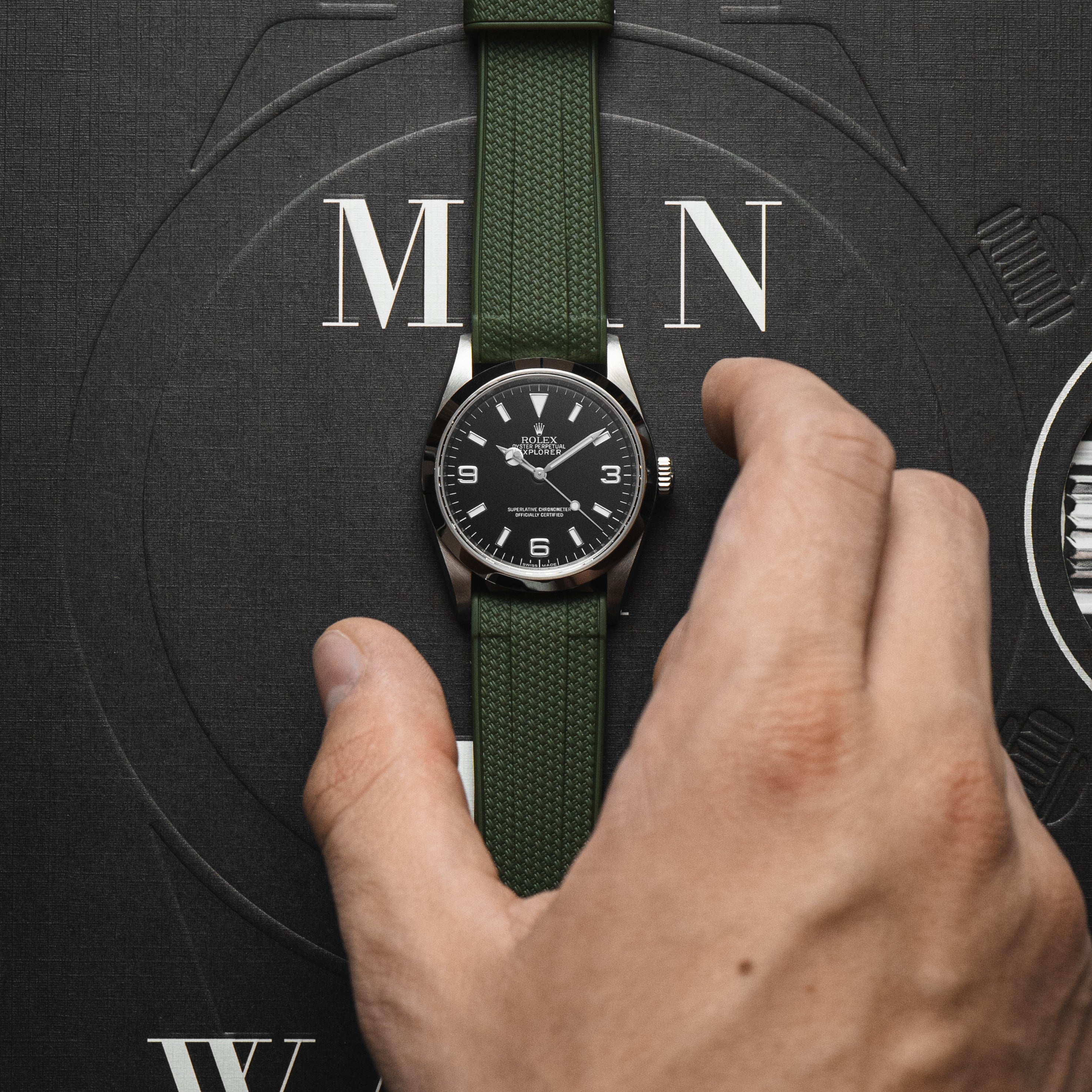 Premium Silicone Rubber: Crafted from liquid silicone rubber, this strap is velvety smooth on the skin while providing a durable shield against daily wear and tear. Perfect for active users, it combines tactile comfort with a robustness that stands up to water, sweat, and sun.