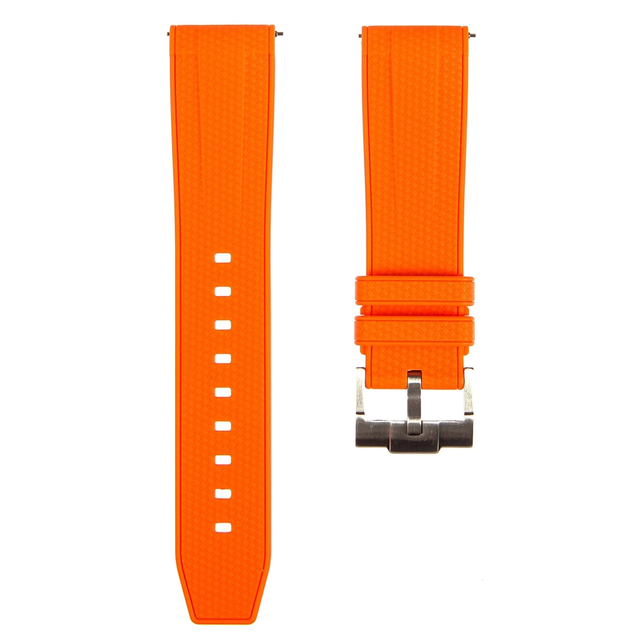Experience refined comfort and timeless style with our Flexweave Silicone Watch Strap. Its subtle weave and ridges add a delightful touch of texture that elevates both the look and feel of your timepiece. Crafted from velvety-smooth liquid silicone rubber, this strap provides long-lasting comfort and resilience to withstand your active lifestyle. Quick-release spring bars allow for effortless strap changes, while the durable stainless steel buckle adds a polished finishing touch. Upgrade your watch with the perfect blend of elegance and practicality.