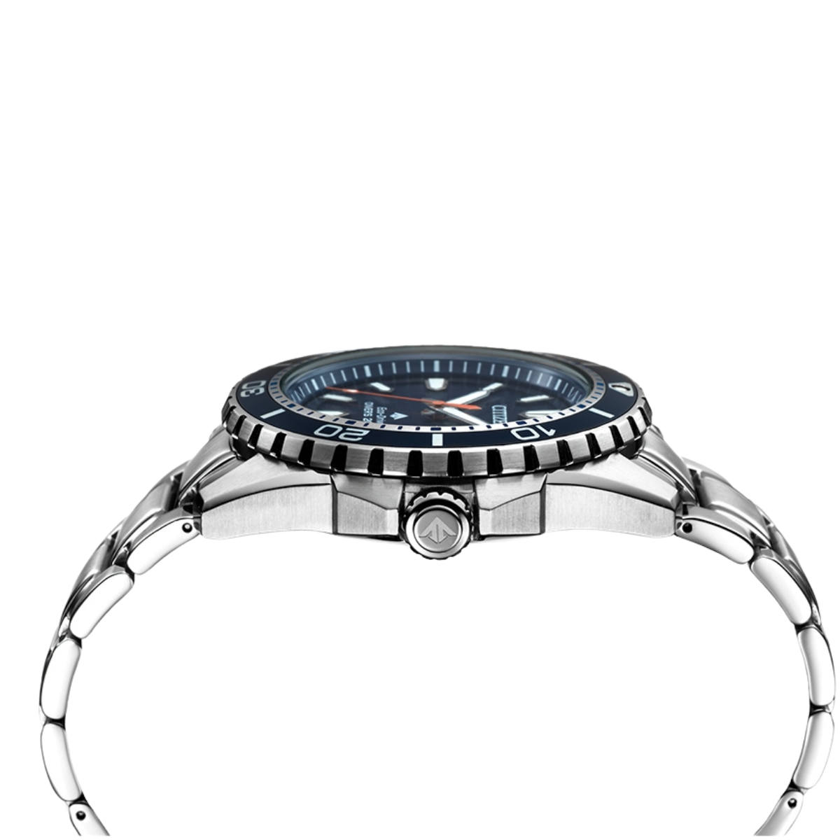 The Citizen Promaster Diver's 200m BN0191-80L offers a blend of sporty style and robust durability. Featuring a striking blue dial, a stainless steel case and bracelet, and a scratch-resistant sapphire crystal (or mineral crystal - please verify), this watch is built to last. The Eco-Drive movement ensures accurate timekeeping, while the 200m water resistance makes it suitable for water sports.