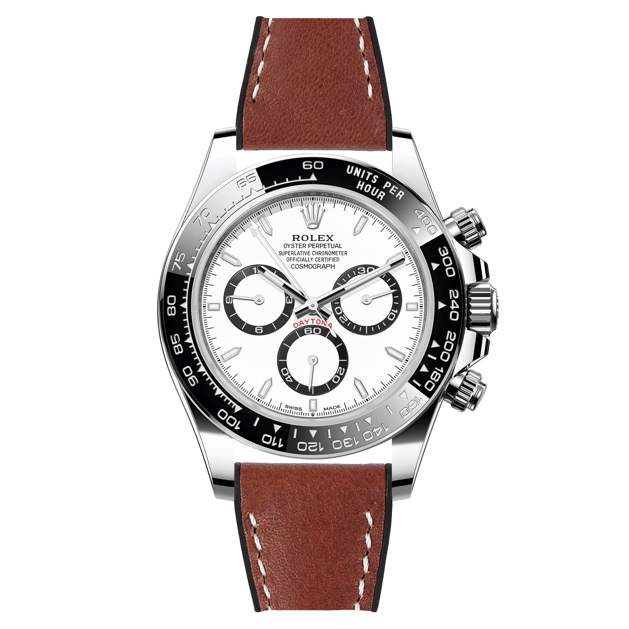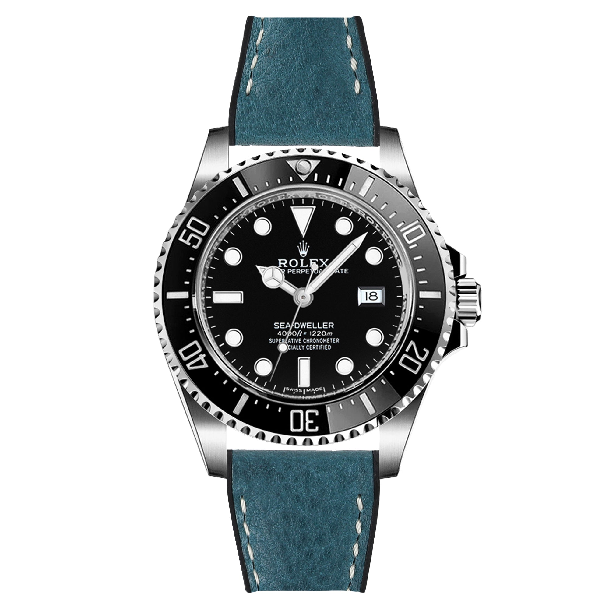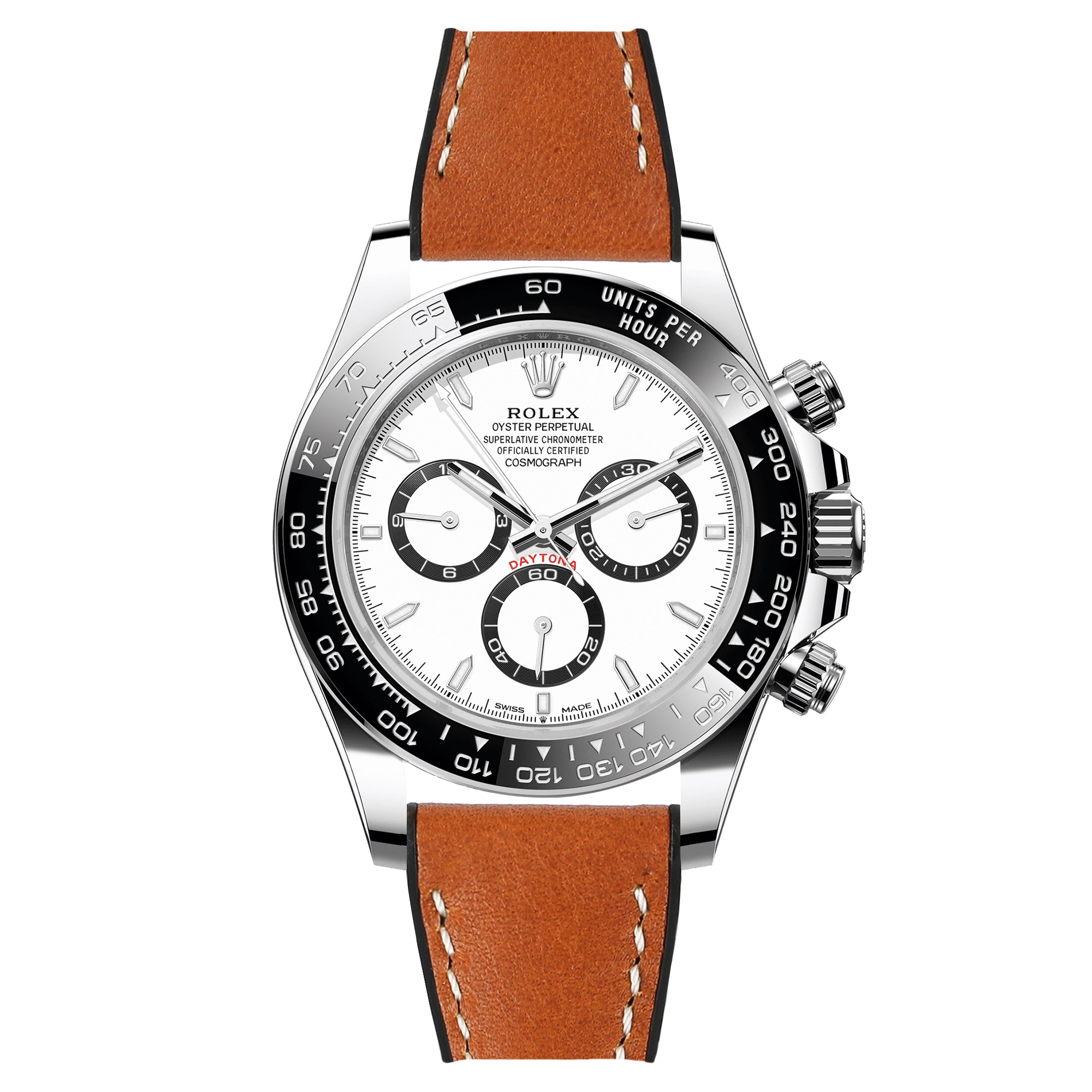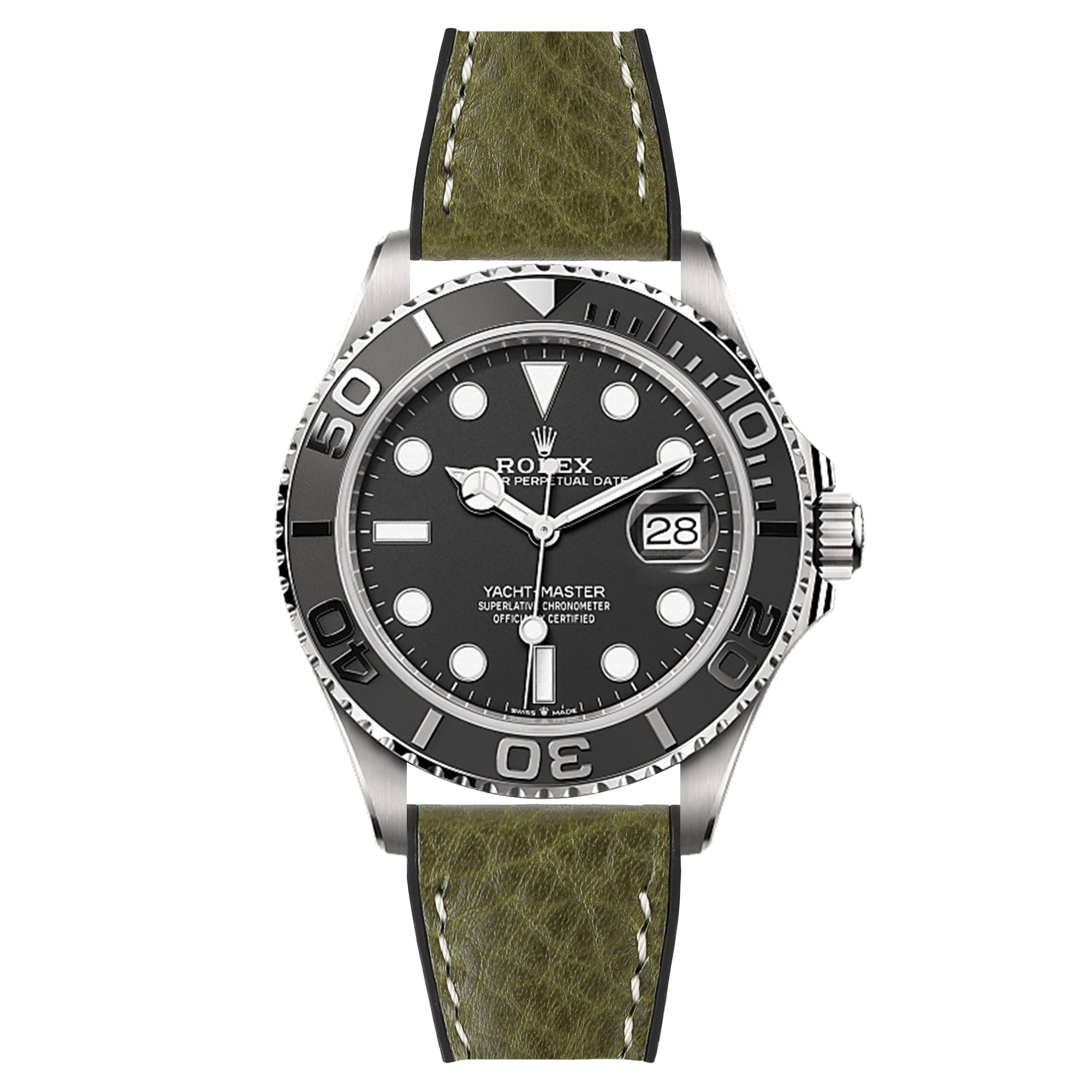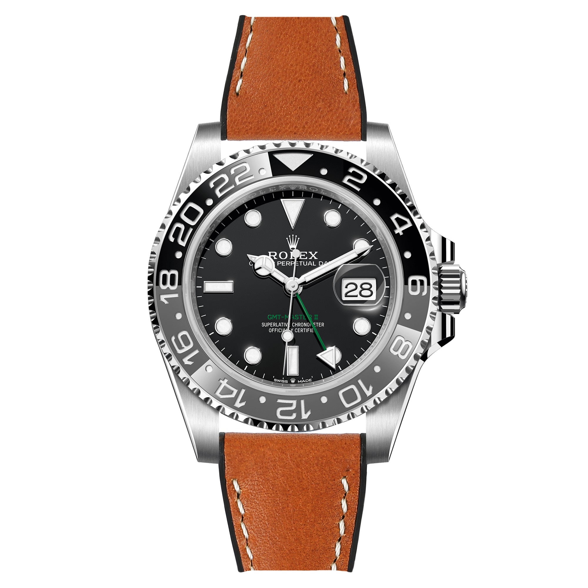 Elevate your Rolex Explorer II with the Watts Italian Leather Performance Hybrid Strap, a sophisticated fusion of classic style and modern functionality. This strap seamlessly integrates the timeless elegance of Italian calfskin leather with the resilient performance of an FKM rubber core, creating a refined yet durable accessory for your cherished timepiece.