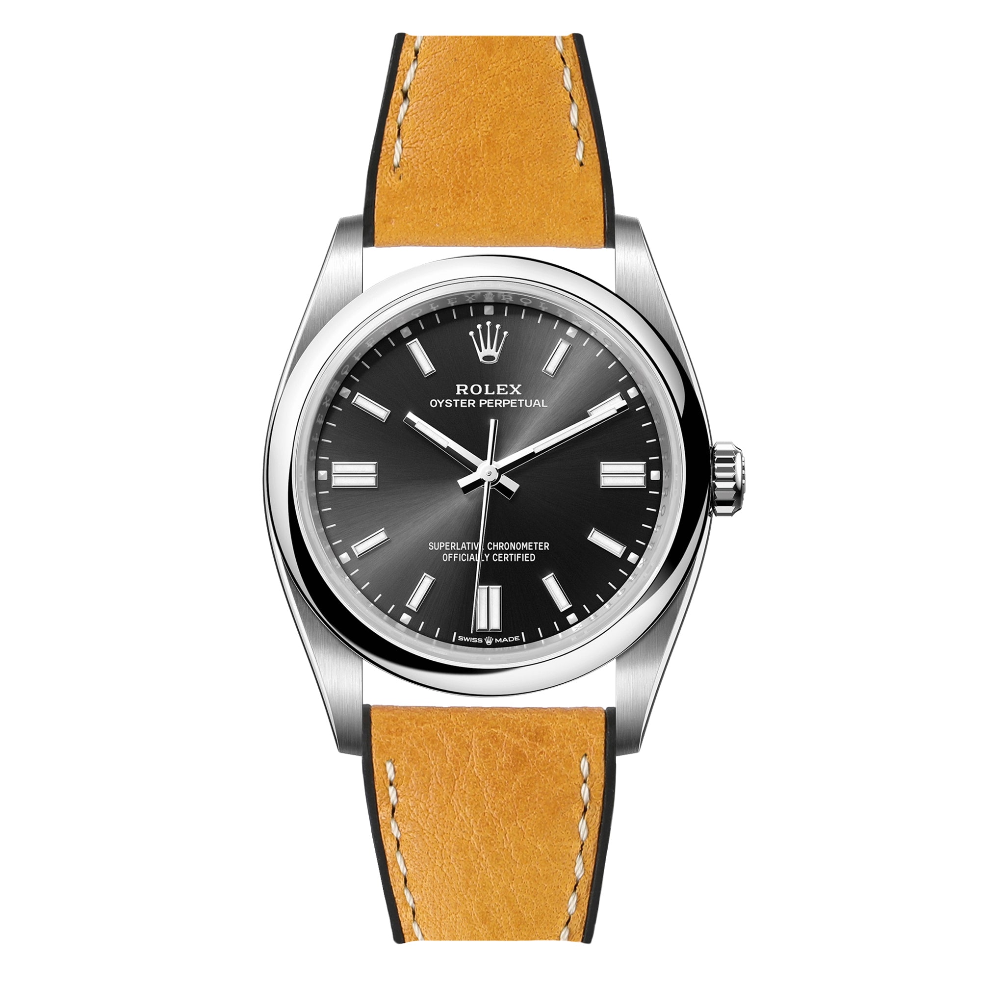 Watts Premium Italian Calf Leather Rubber Hybrid Performance Watch Band for Rolex Explorer II - Black (8013) Sale price$57.00 SGD