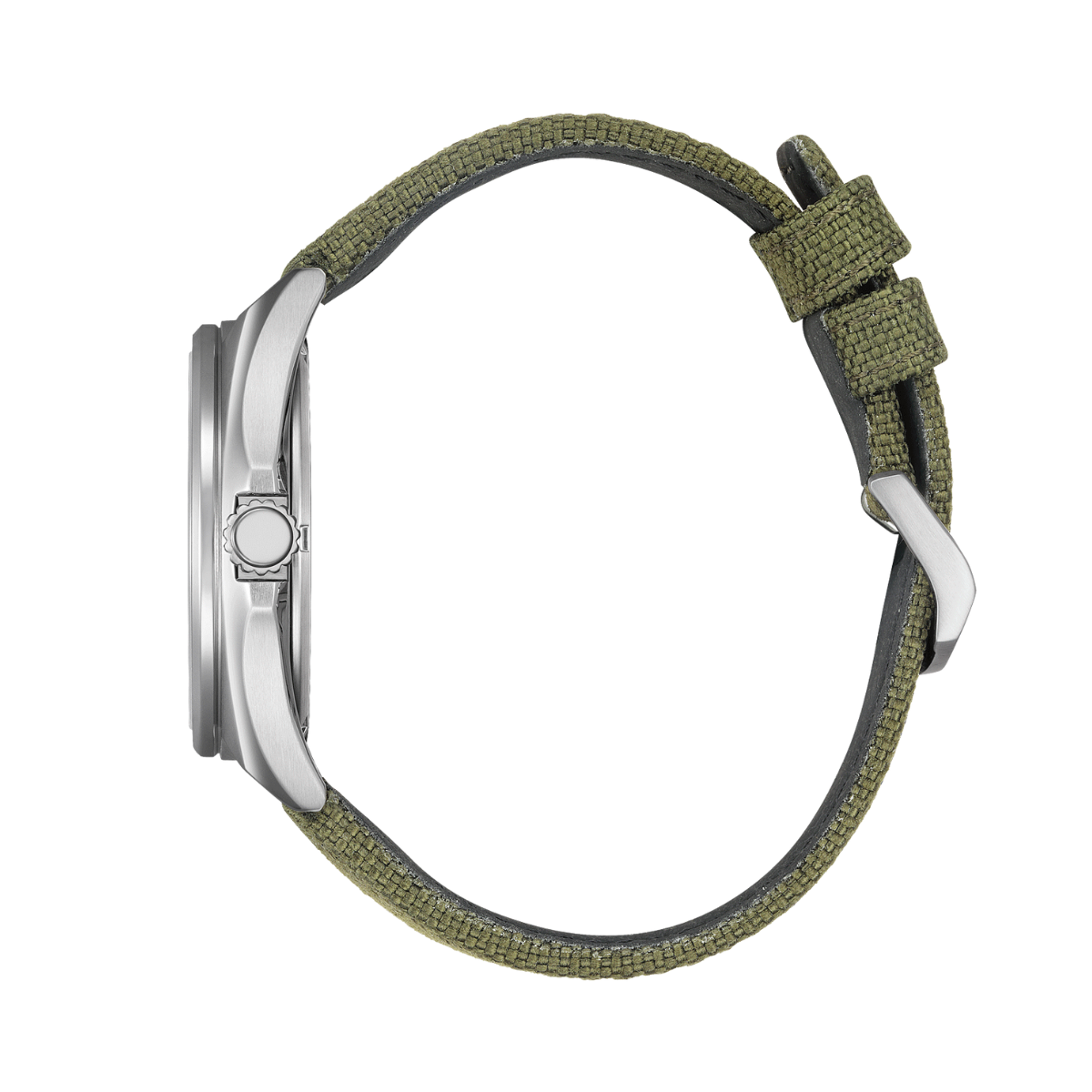 Discover the rugged style and reliable performance of the Citizen Eco-Drive Sports Military AW1571-09A. This men's watch features a clean white dial with bold Arabic numerals and stroke indices, along with a date display. Powered by Citizen's innovative Eco-Drive technology, it charges with light and never needs a battery. The durable green nylon strap and 10 bar water resistance make it perfect for everyday adventures.