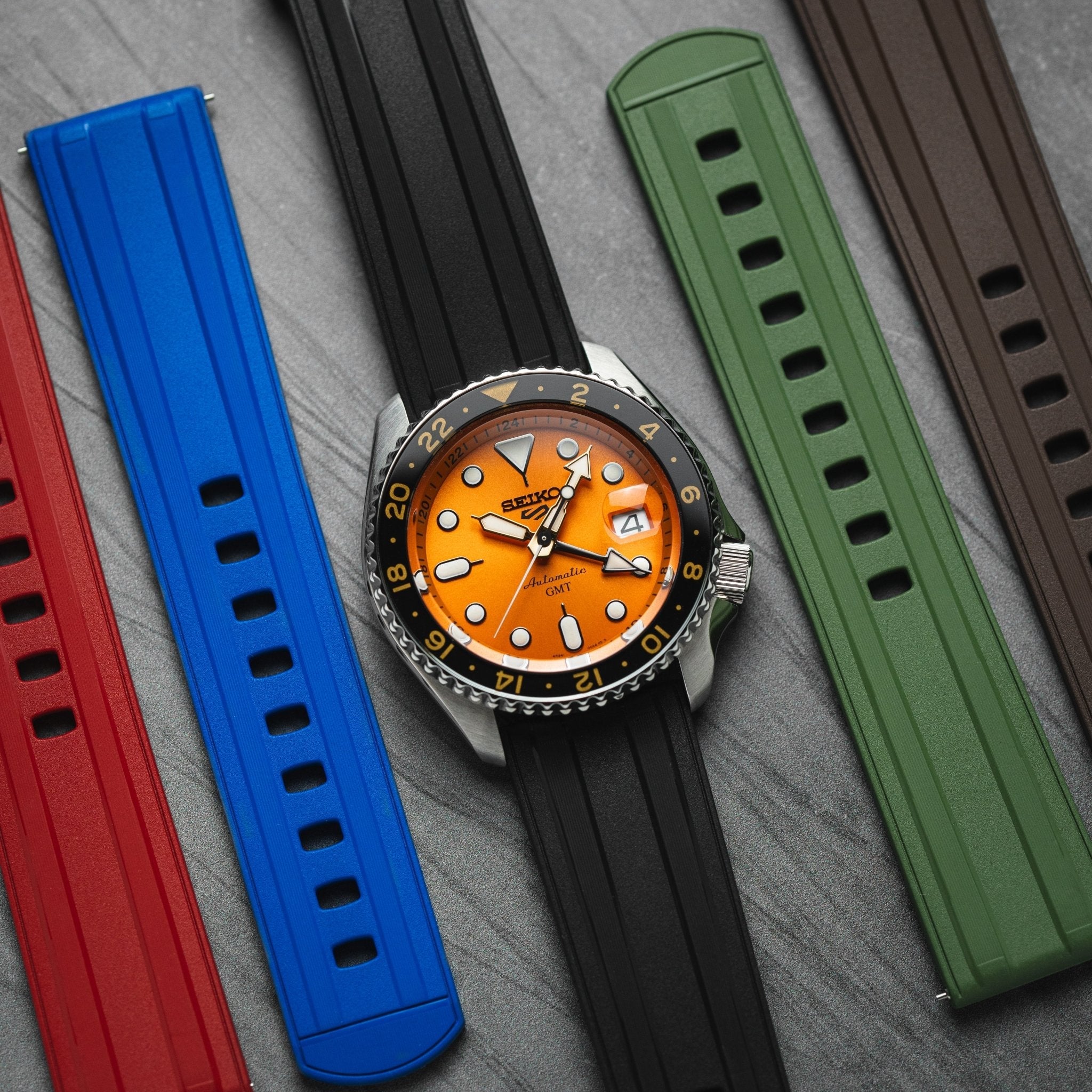 Uncompromising Durability: Engineered from fluorocarbon FKM rubber, this strap is resistant to heat, chemicals, and UV damage, ensuring lasting performance and vibrant color, even after prolonged exposure to the elements.