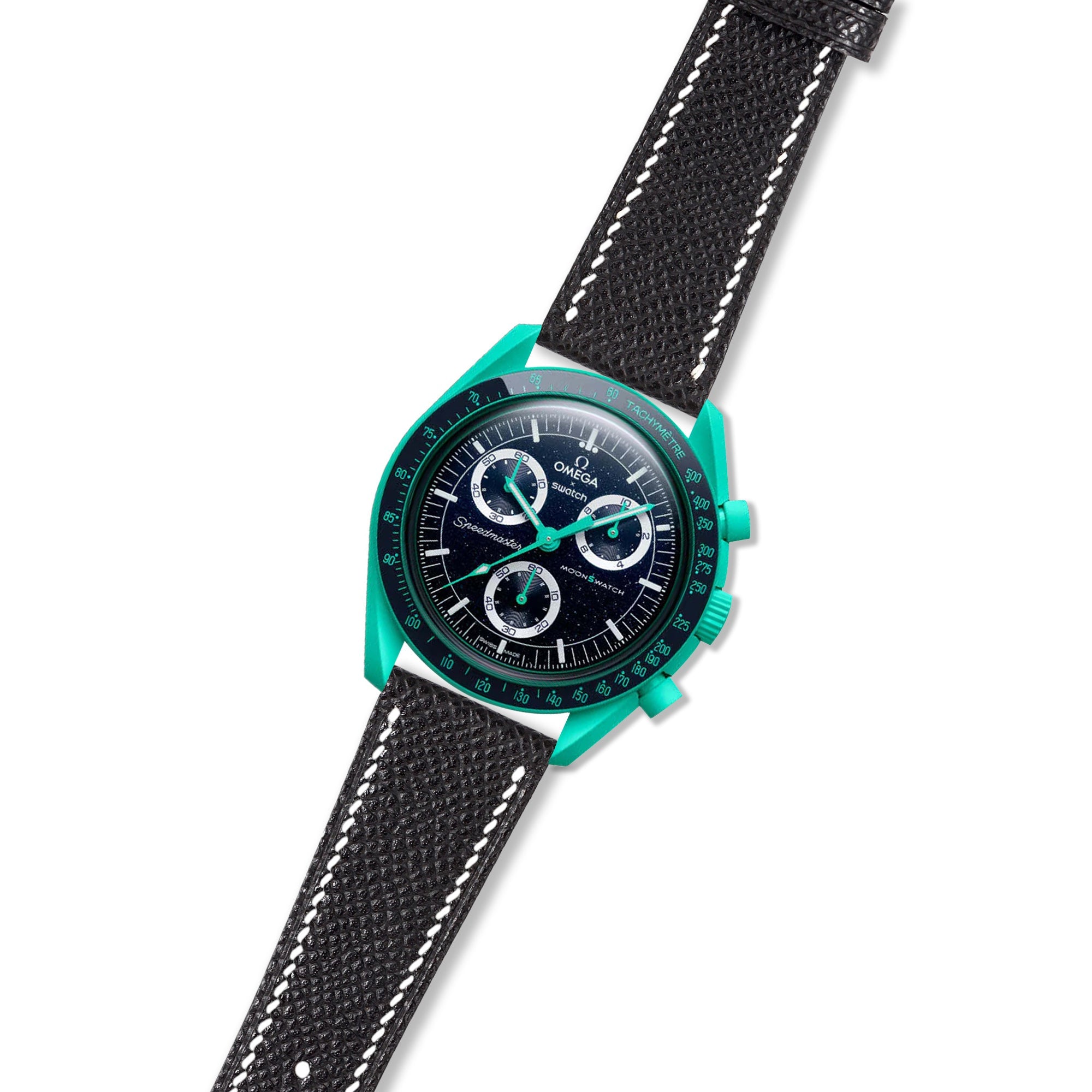 Elevate your Omega x Swatch Moonswatch Mission on Earth - Polar Light with a touch of French elegance. Our Epsom Calfskin Leather Strap, handcrafted from premium leather sourced from the renowned Tanneries Du Puy, adds a sophisticated and refined touch to your Bioceramic timepiece.