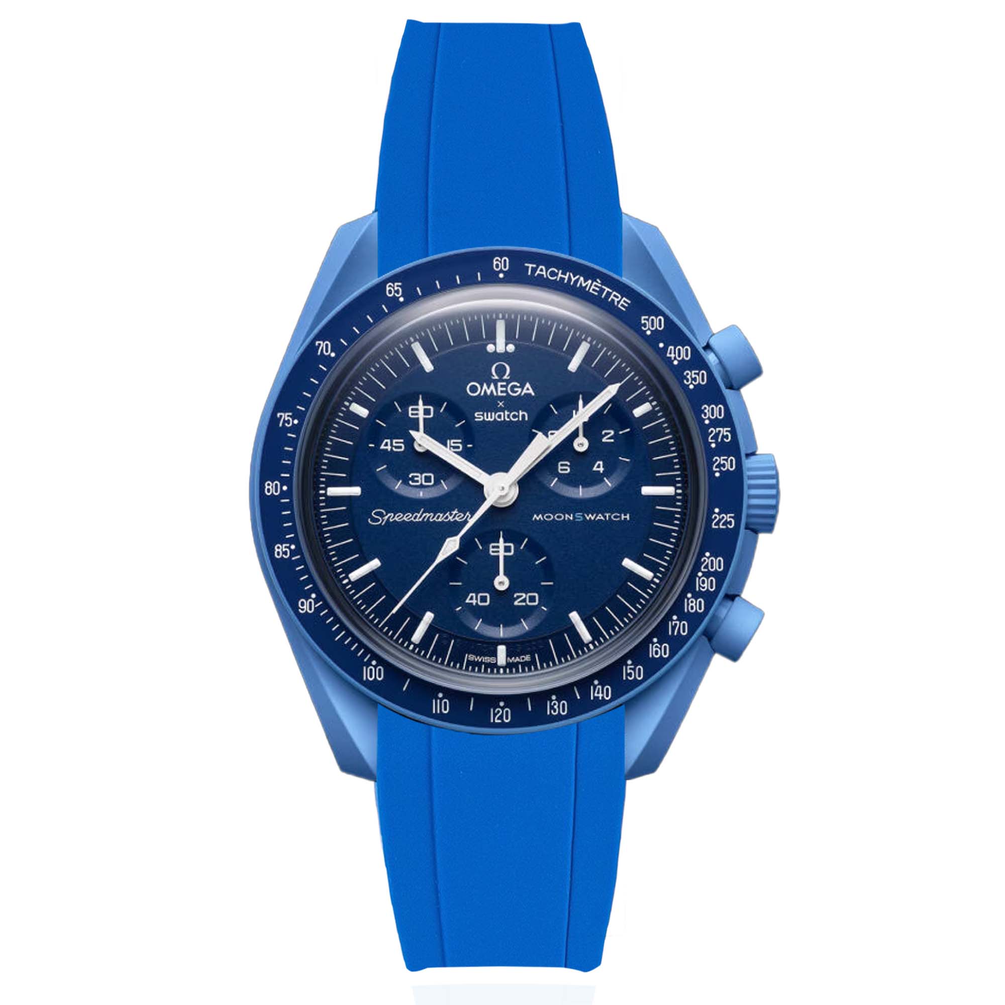 Enhance your Omega x Swatch Moonswatch Mission to Jupiter with our premium Curved End Silicone Rubber Strap. Designed for exceptional comfort, style, and convenience, this strap is the perfect complement to your Bioceramic timepiece.